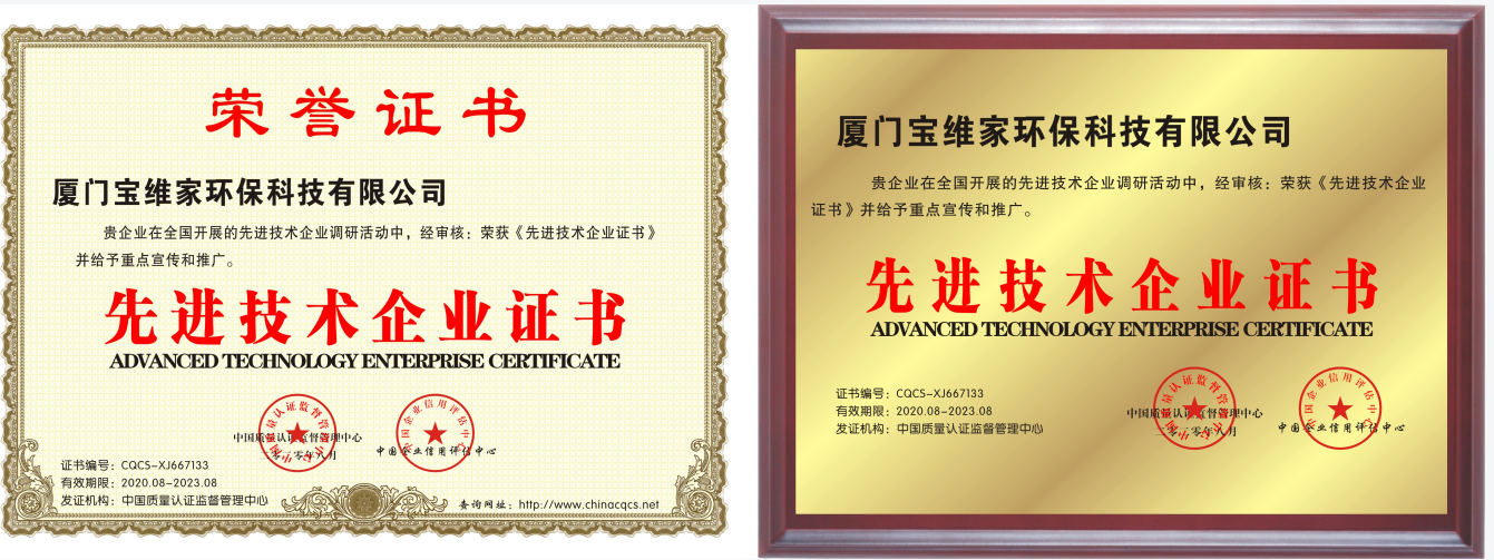 廈門寶維家環??萍加邢薰驹谌珖_展的先進激素企業調研活動中,經審核:榮獲《先進技術企業證書》并給予重點宣傳和推廣。