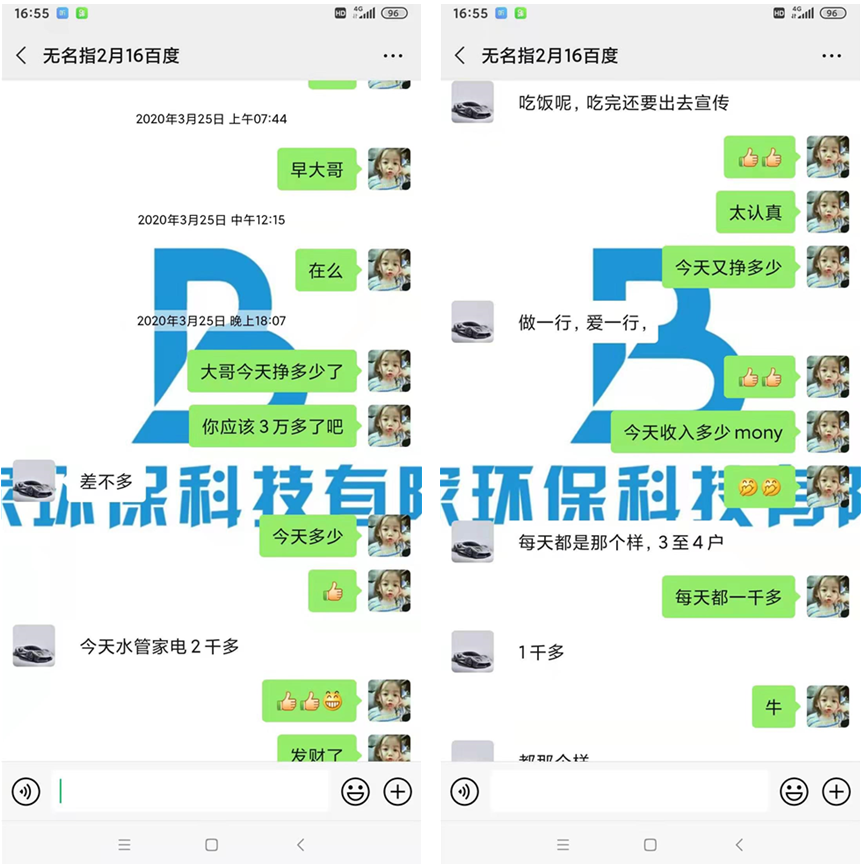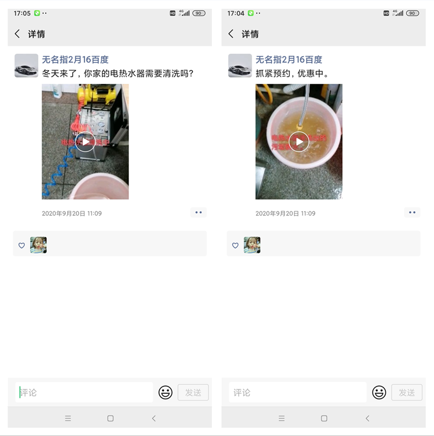 在收到設備后,經過技術老師的一對一操作指導,郭先生不久便學會了水管清洗和家電清洗的設備操作。接下來就開始了宣傳推廣這一步,由于郭先生之前是在工廠工作,所以微信里有很多工友以及領導的微信。郭先生覺得這也是一種資源,可以利用起來,于是就開始了在朋友圈里宣傳水管清洗的重要性以及一些清洗效果的視頻。