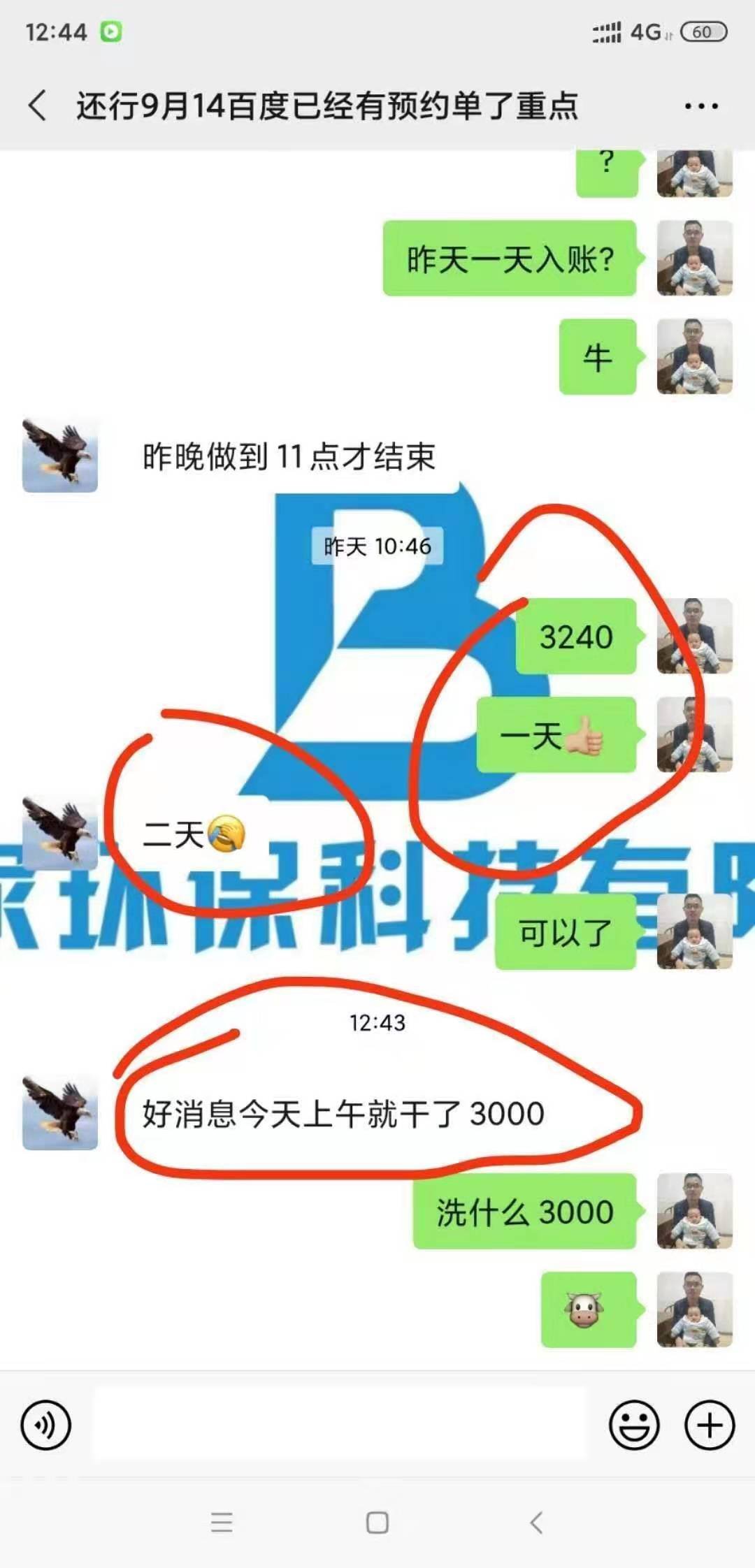 這是這幾天相總反饋的一些訂單收入情況,其實相總能有現(xiàn)在的成績和他的努力是分不開的,因為相總對待每一個清洗客戶都是非常熱情和負責的,在清洗的過程中也是非常認真的;因此朋友圈的客戶都比較信任和認可相總,所以也愿意為相總轉介紹新的清洗客戶,相總的資源也因此越來越多。