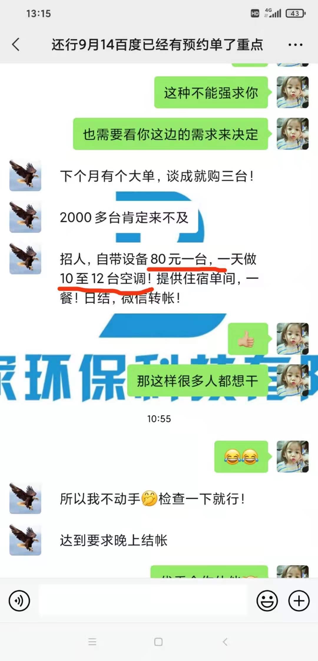 因為現(xiàn)在相總的清洗業(yè)務量非常大,所以需要大量招清洗師傅。除了需要寶維家合作客戶的熟練技術師傅幫他清洗還要再增加設備。