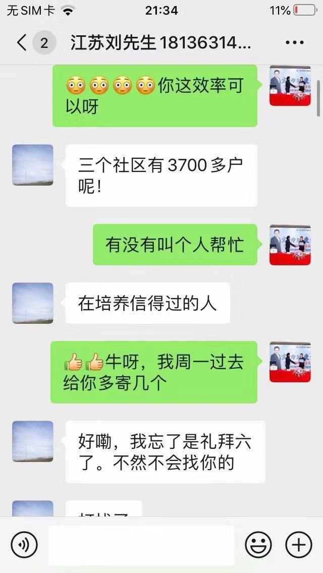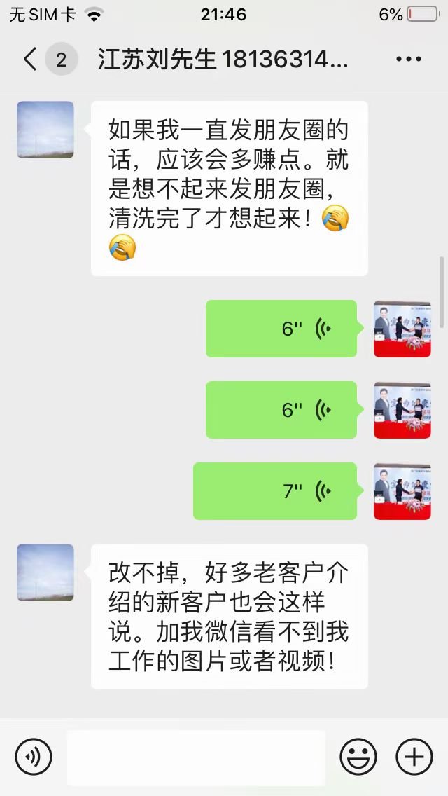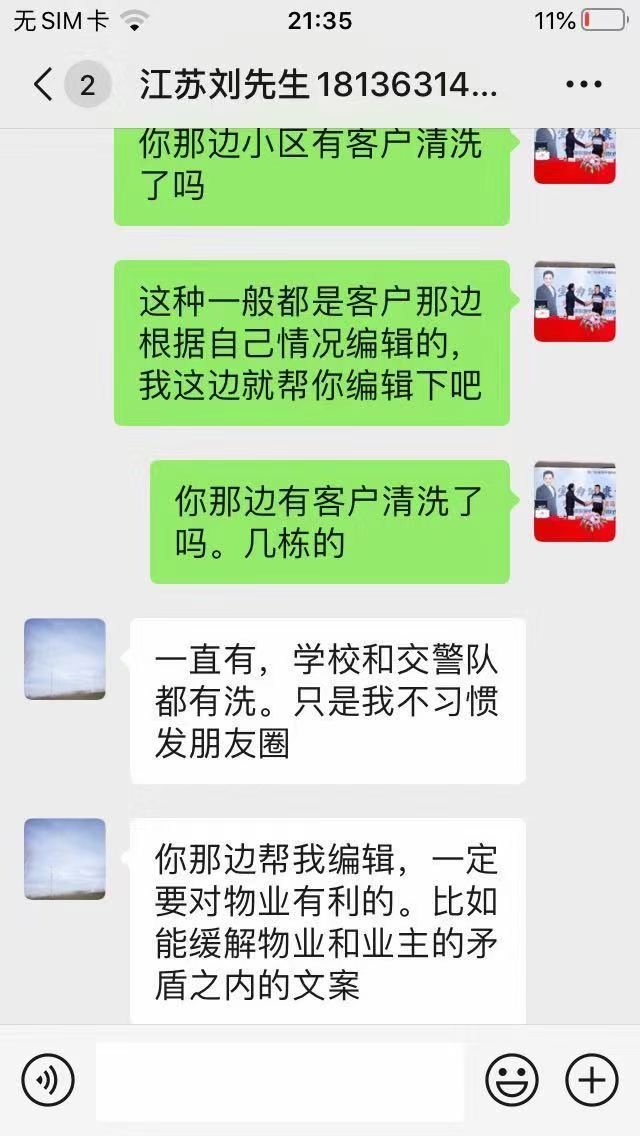 接下來(lái)每清洗一戶,劉先生就會(huì)讓清洗客戶幫忙發(fā)朋友圈幫自己宣傳一下,在如何編輯朋友圈宣傳效果會(huì)更好這一方面也積極地詢問(wèn)了推廣老師并尋求幫助。
