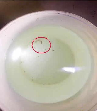 當天上午11時許, 記者來到何女士家中,在餐桌上放著一個盛滿水的大盆,盆中有兩條細長的紅色線蟲,正在水中蠕動。“這些紅蟲就是從自來水中流出來的。”何女士指著廚房的自來水管說。據何女士介紹,盆中的這些小紅蟲是她頭一晚接自來水時流出來的, 而這樣的情況在上個月也出現過一次。“做飯就用這水,洗菜洗碗都用,洗衣服也用。我就想我們以前是不是早把蟲子吃到肚子里了,惡心得簡直不行。渾身癢的都感覺難受, 心里很不舒服。”何女士非常擔心是自來水的水質出現了問題。